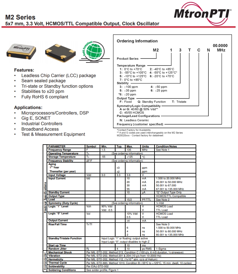 | MTRONPTI晶振規(guī)格 | 單位 | M2晶振 | 石英晶振基本條件 |