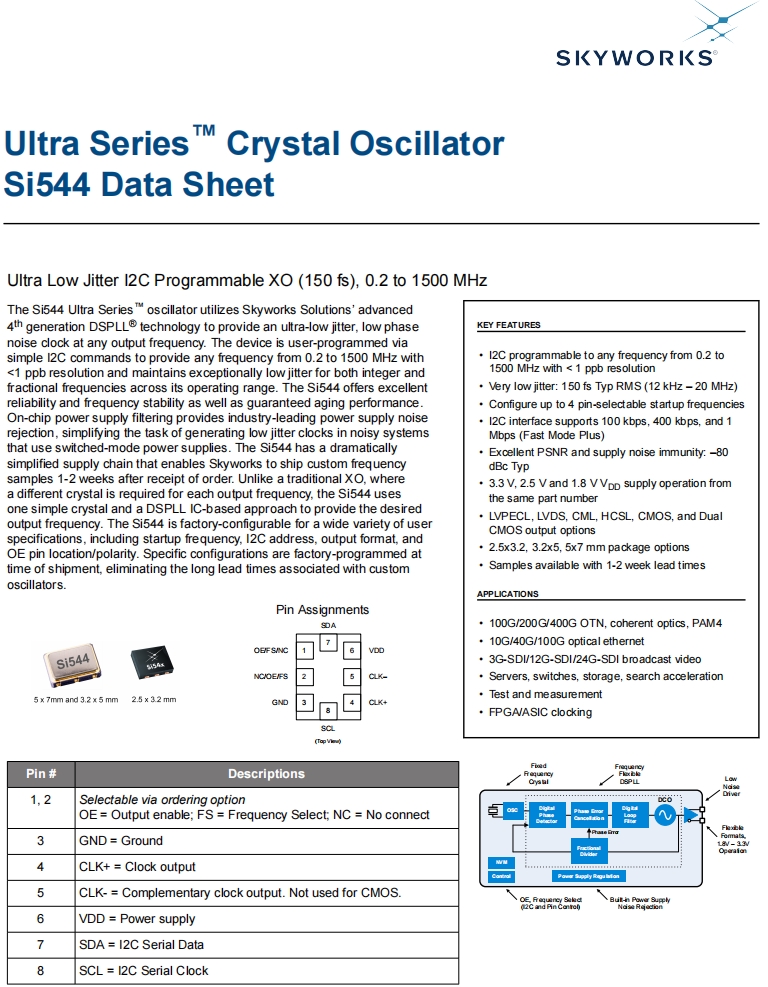 | 544BAAA000137BBG | Skyworks Solutions Inc. | Ultra™ Si544 | 1.024 GHz | LVDS | 1.8V, 2.5V, 3.3V |