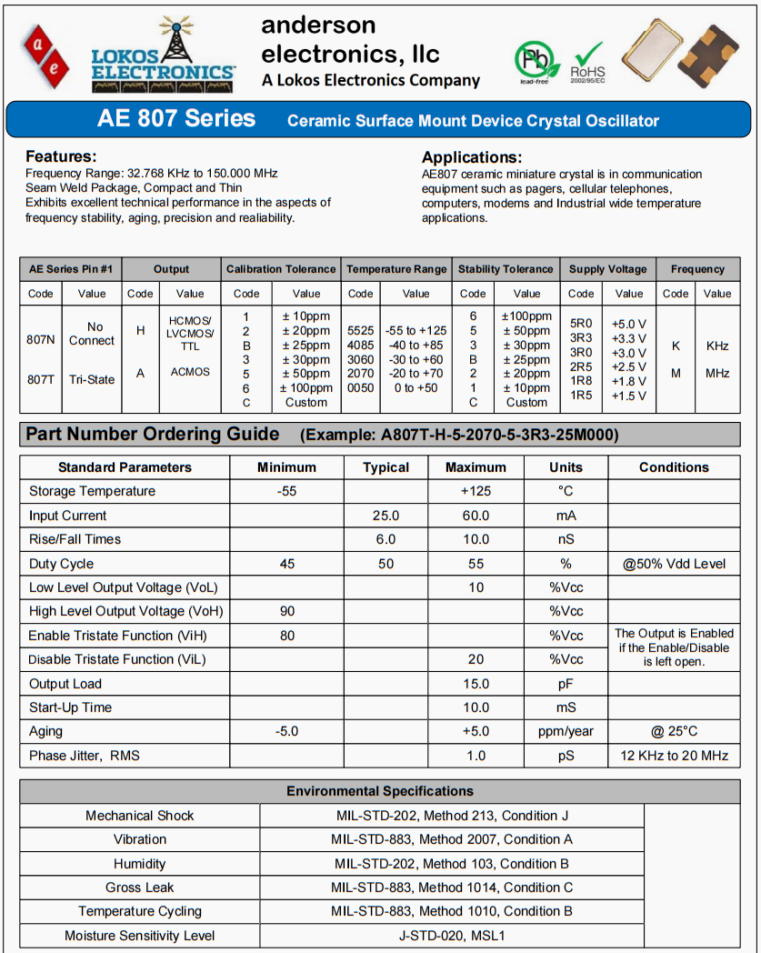 首頁歐美晶振AE807T-H-5-2070-5-3R3-27M000|AE807T|27MHz|Anderson Crystal