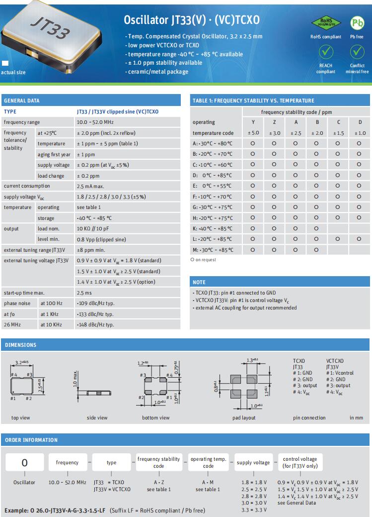 | Q 26.0-JXS22-8-10/10-FU-WA-LF | Jauch晶振 | JXS22-WA | 26MHz | ±10ppm | 8pF | -20°C ~ 70°C |