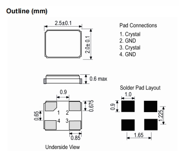 -標準的2.5 x 2mm SMD晶體在密封陶瓷封裝與接縫密封金屬蓋