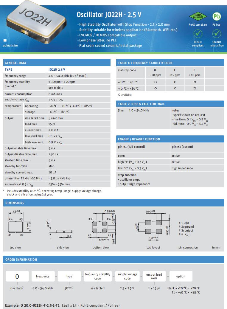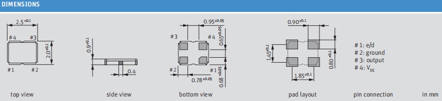 -高穩定性振蕩器與停止功能•2.5 x 2.0毫米