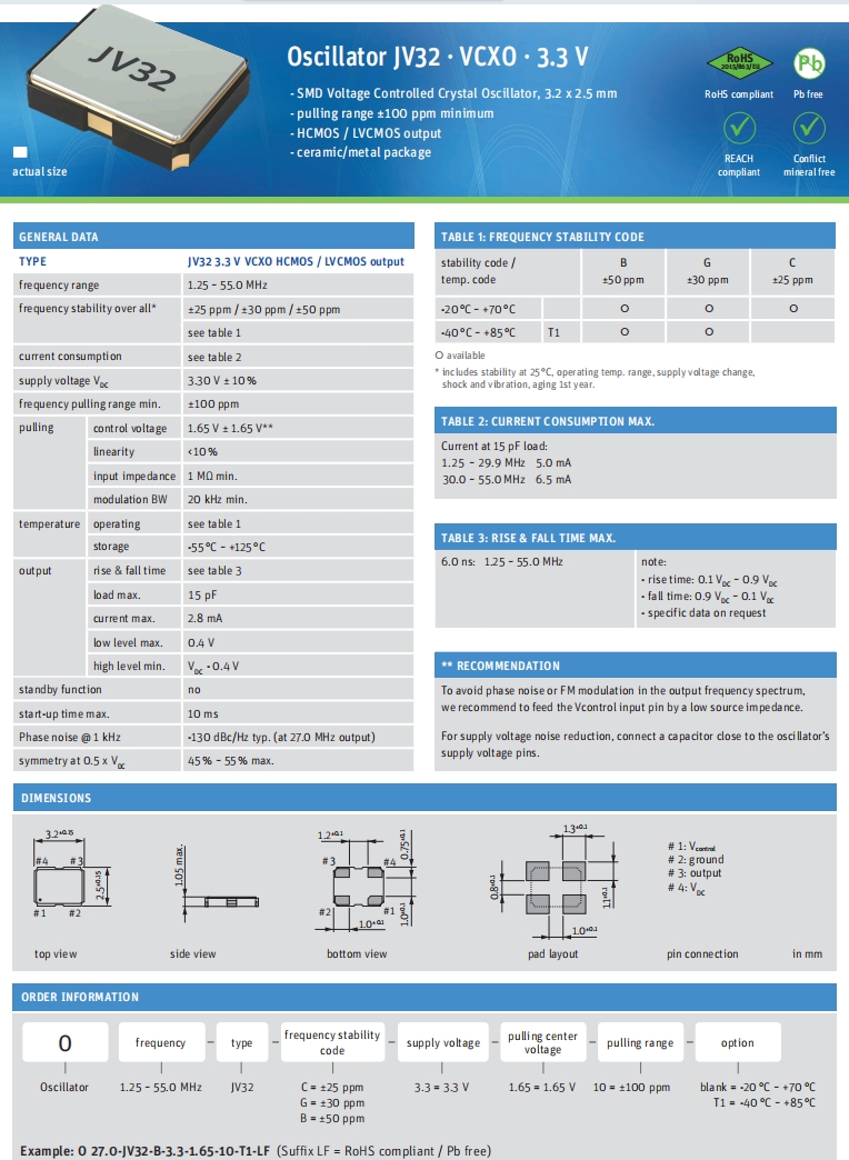 O 20.0-JV32-B-3.3-1.65-10-T1-LF|Oscillator Crystal規格表