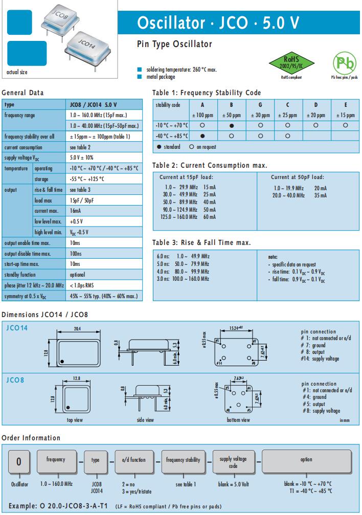 O 8.1920-JCO8-3-B-T1-LF|Jauch Crystal規(guī)格表