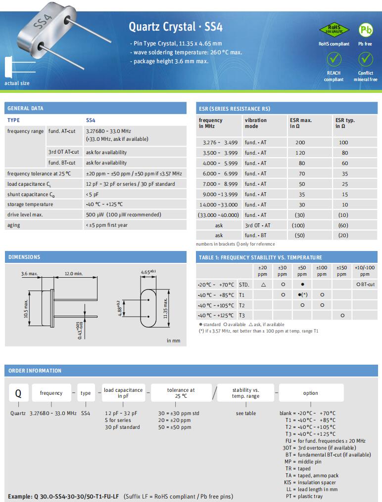 Q 16.0-SS4-30-30/100-T1|Resonator Crystal規格表