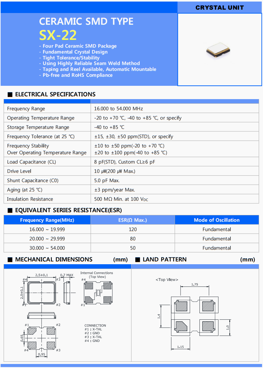 | 老化 | ±3 ppm/year Max. |