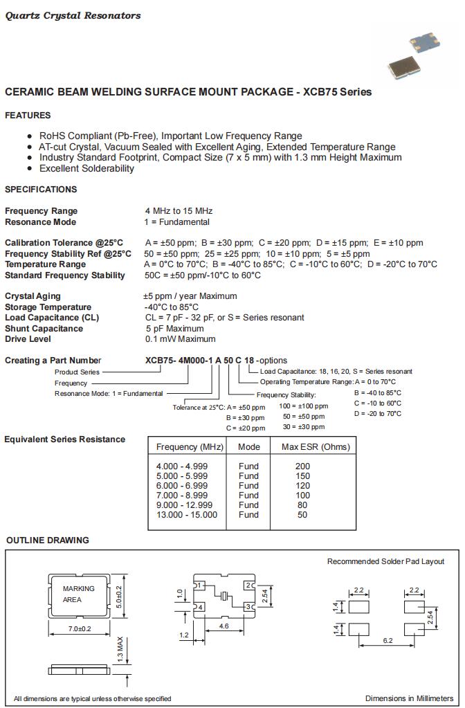 XCB75-4M000-1C30B18|4MHz|18pF|富通石英晶振規(guī)格表