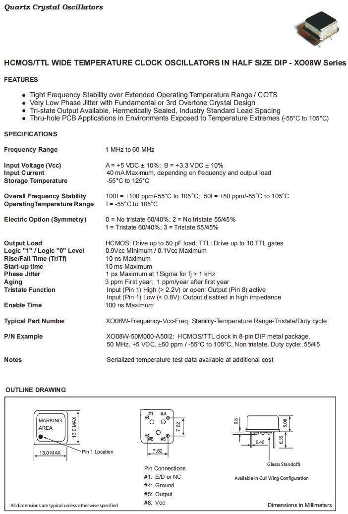 XO08W-50M000-A50I2|50MHz|5V|Fortiming正方形鐘振,Fortiming晶振,XO08W有源晶振,正方形鐘振,XO08W-50M000-A50I2晶振,石英晶體振蕩器,四腳插件晶振,頻率50MHz,電壓5V,頻率容差50ppm,工作溫度-55~105°C,在擴展的工作溫度范圍/ COTS上具有緊密的頻率穩定性,低相位抖動晶振,通孔PCB應用晶振,網絡附屬存儲晶振,固態 硬盤晶振,通用處理器晶振.