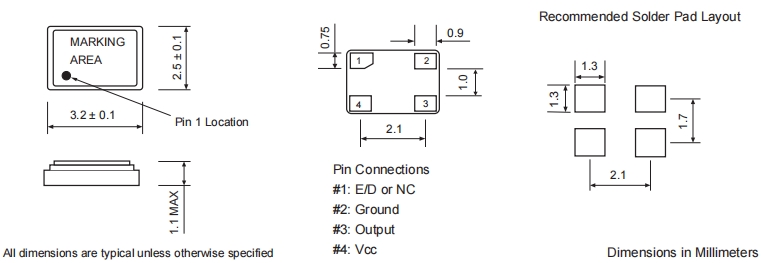 XO32-24M000-B25B3|24MHz|3.3V|Fortiming Crystal尺寸圖
