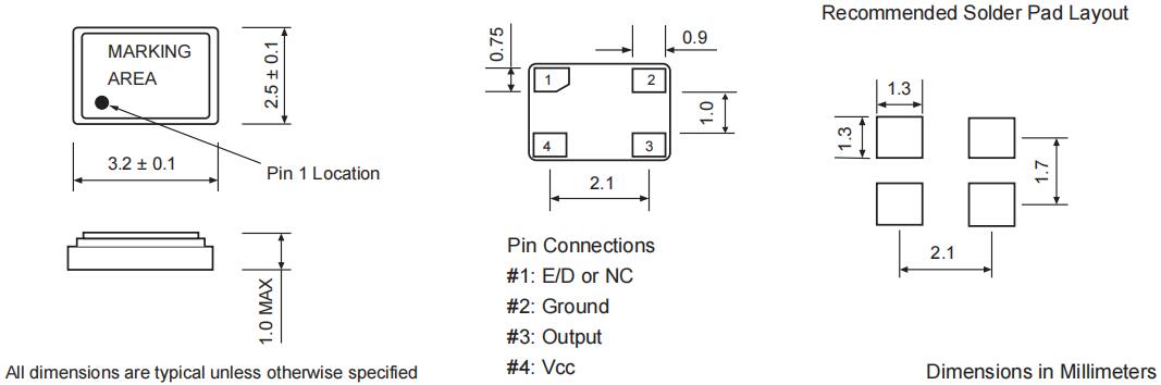 XO32-32K768-T|32.768KHz|3.3V|富通石英水晶振蕩器尺寸圖