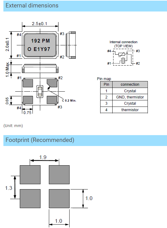 | 頻率老化 | f_age | ±1 × 10-6 / year Max. | +25°C,第一年 |