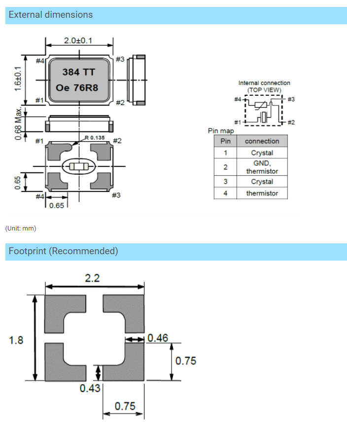 | 激勵功率 | DL | 200μW Max. | 推薦:1μW ~ 100μW |