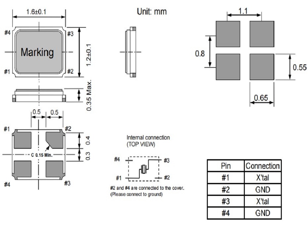 | X1E0002510155 | 1.6 x 1.2 x 0.35mm | FA-118T | 32.000000 MHz | 9 pF | +/-30 ppm | -20 to +75 °C |