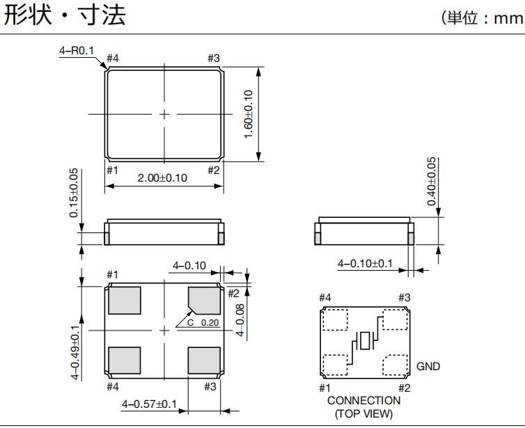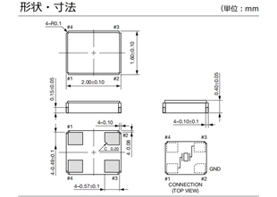 16MHZ/CX2016DB16000D0FLJCC/CX2016DB/-30~85℃/水晶振動(dòng)子 尺寸圖