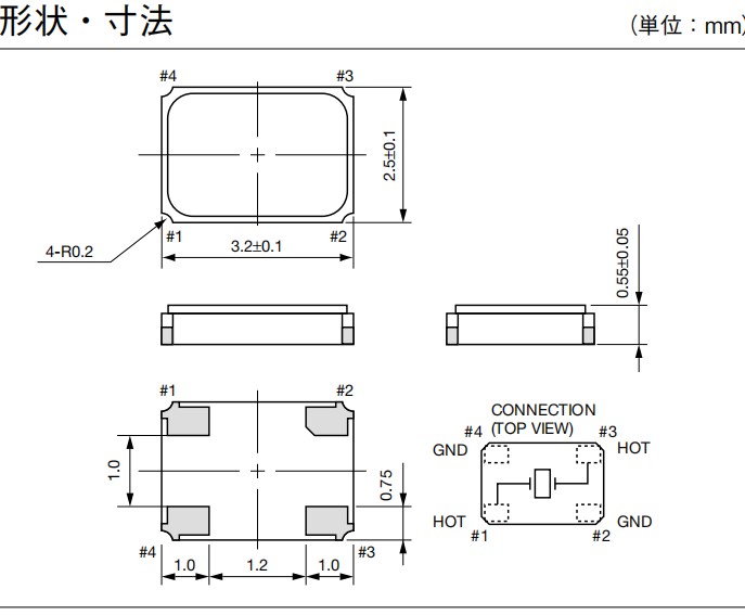 CX3225SB12000H0FLJCC,12MHZ,Kyocer,車載攝像機,SMD 尺寸圖
