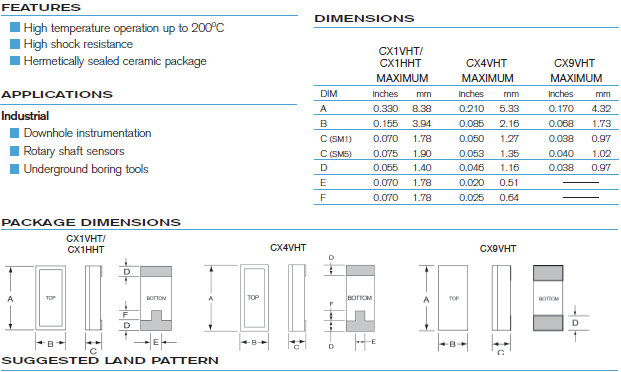 | 頻率溫度特征 | f_tem | ±100 × 10-6/25°C | 超出標(biāo)準(zhǔn)的規(guī)格請(qǐng)聯(lián)系我們. |