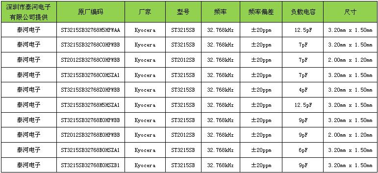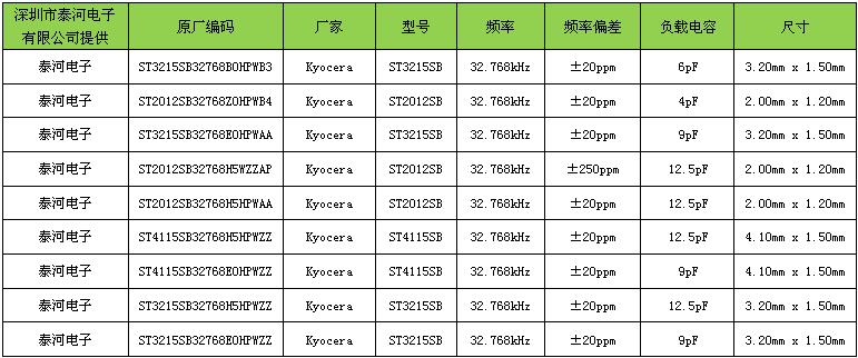 日本京瓷晶振公司32.768K系列ST3215SB32768H5HPWAA晶振編碼