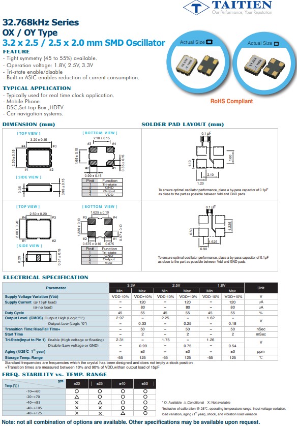 | OXKTCDJANF-0.032768 | Taitien | OX | XO (Standard) | 32.768kHz | 1.8V |