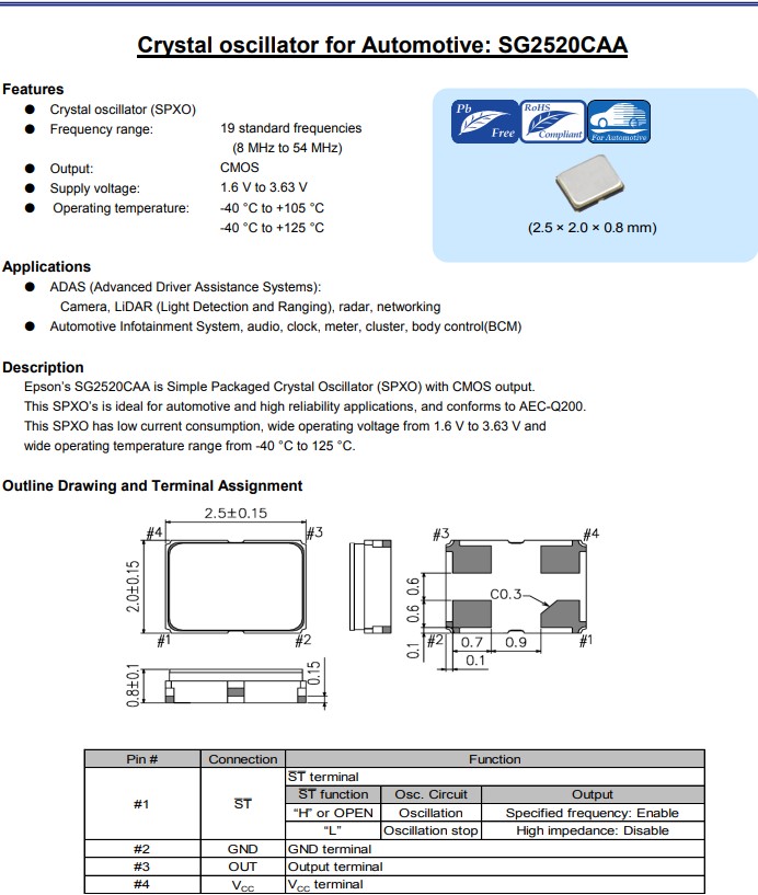SG2520CAA是具有CMOS輸出的2520mm晶體振蕩器,X1G005951002416,汽車級SMD晶振|