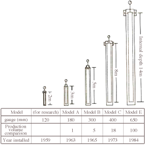 憑借山梨大學(xué)國(guó)立教授的專業(yè)知識(shí),東洋通信設(shè)備公司的團(tuán)隊(duì)開始致力于開發(fā)更大的高壓滅菌器。他們生產(chǎn)的第一款機(jī)型有一個(gè)深度為800毫米的50毫米規(guī)格。接下來(lái)是一個(gè)略大的版本,規(guī)格為70-80mm,深度為1500-1600mm。最后,在1957年,他們成功地創(chuàng)造了一個(gè)更大的高壓滅菌器,其規(guī)格為120毫米,深度為2000毫米。