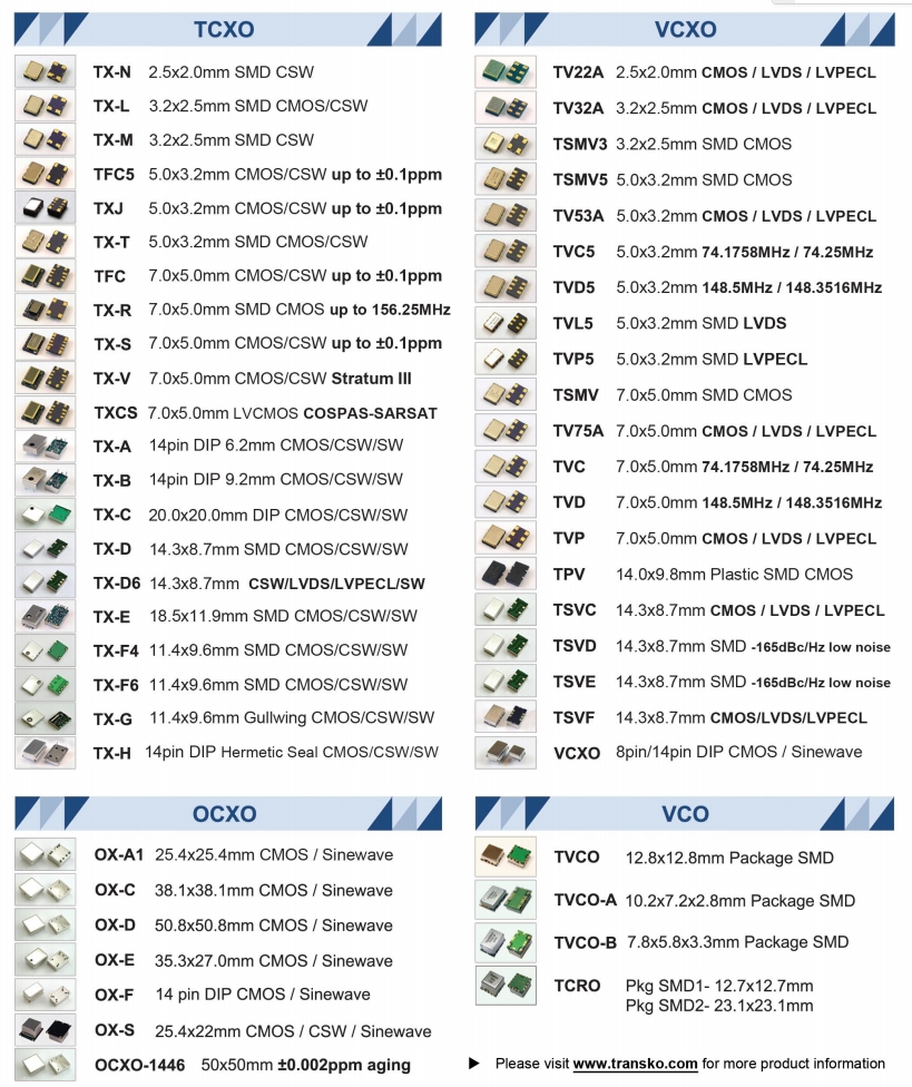 關于領先全球的Transko晶振公司的全系列產品大匯總