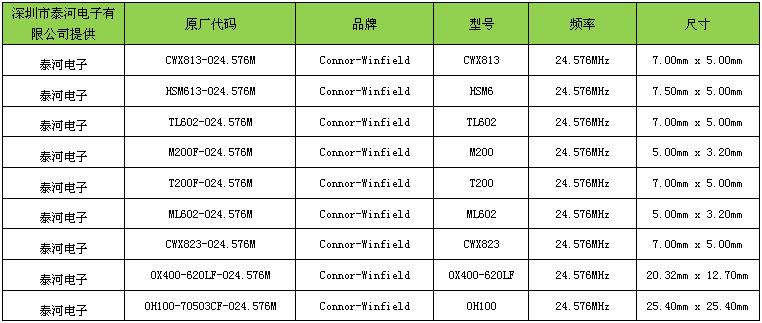 康納溫菲爾德晶振低頻CWX825-24.576M晶振編碼料號對應表