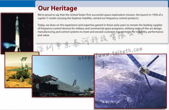 我們很自豪地說,美國第一次成功的太空探索任務,即1958年發射的攜帶探測衛星的Jupiter-C火箭,載有我們的頻率控制產品。