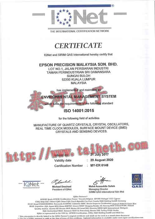 - [2019-02-15]愛普生晶振有限公司ISO4001認證...