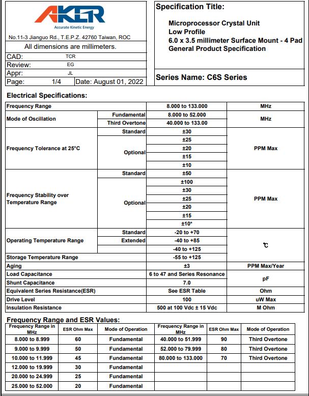 C6S-80.000-12-2030-X2-R|臺灣AKER品牌,臺灣AKER晶振,C6S無源晶振,石英諧振器,C6S-80.000-12-2030-X2-R晶振,6035mm晶振,進口貼片晶振,四腳晶振,SMD晶體,頻率80MHz,負載12pF,頻率容差20ppm,工作溫度-40~105°C,低老化晶振,高穩定性晶振,高精度晶振,工業自動化晶振,健身設備晶振,網絡服務器晶振,存儲系統晶振.