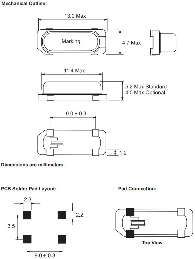 | Mode of Oscillation | Fundamental | 3.200 to 32.768 | MHz |