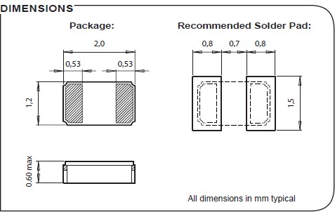 | 頻率溫度特征 | f_tem | ±30 × 10-6/-20°C ~ +70°C | 超出標準的規(guī)格請聯(lián)系我們. |