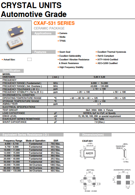臺(tái)產(chǎn)6G信號(hào)放大器晶振,CXAF−531 32MHz無(wú)源晶振,臺(tái)灣AKER晶振公司,CXAF−531晶振,高品質(zhì)晶振,5032晶振,6G信號(hào)放大器晶振,6G無(wú)線網(wǎng)晶振,小尺寸晶振,日本進(jìn)口晶振,6G通訊設(shè)備晶振,6G路由器晶振,四腳晶振,石英晶振,貼片晶振,無(wú)源晶振,接縫密封,優(yōu)異的熱滯性,優(yōu)良的可焊性,通過(guò)無(wú)鉛認(rèn)證,實(shí)際尺寸,優(yōu)異的抗振性,IATF−16949認(rèn)證,耐沖擊,AEC−Q200合格,高頻穩(wěn)定性