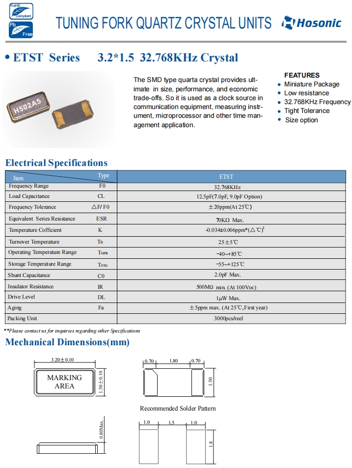| E3SB32.0000F18E22 | Hosonic晶振 | E3SB | 32 MHz | 18 pF | ±20 ppm | ±20 ppm |