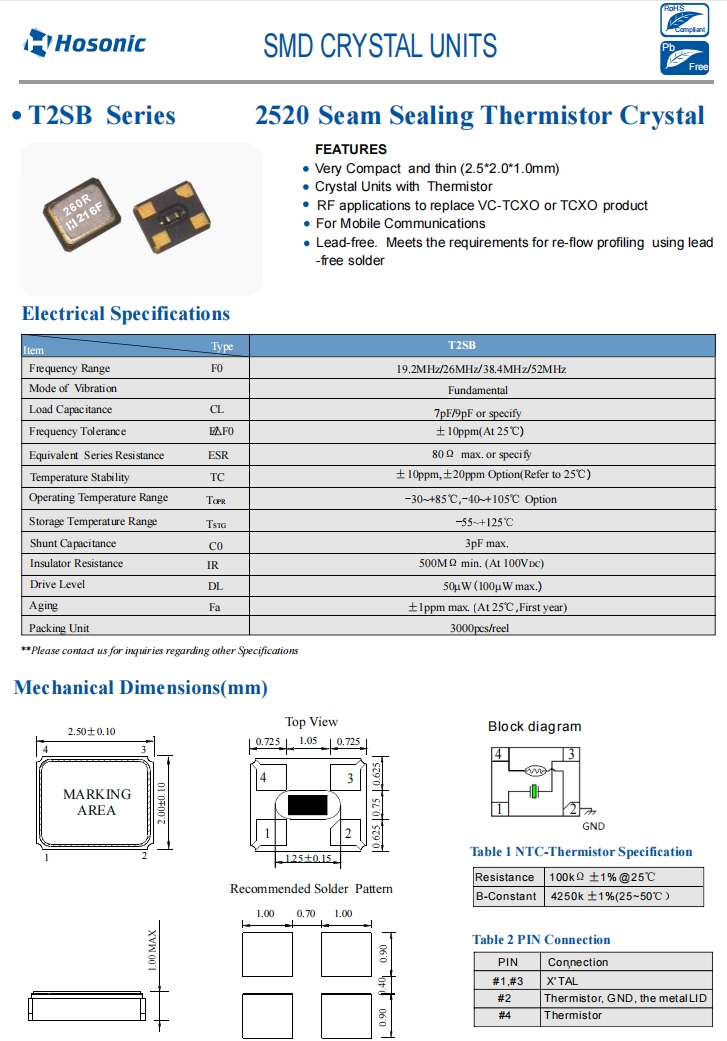 | E3SB26.0000F18E22 | Hosonic晶振 | E3SB | 26 MHz | 18 pF | ±20 ppm | ±20 ppm |