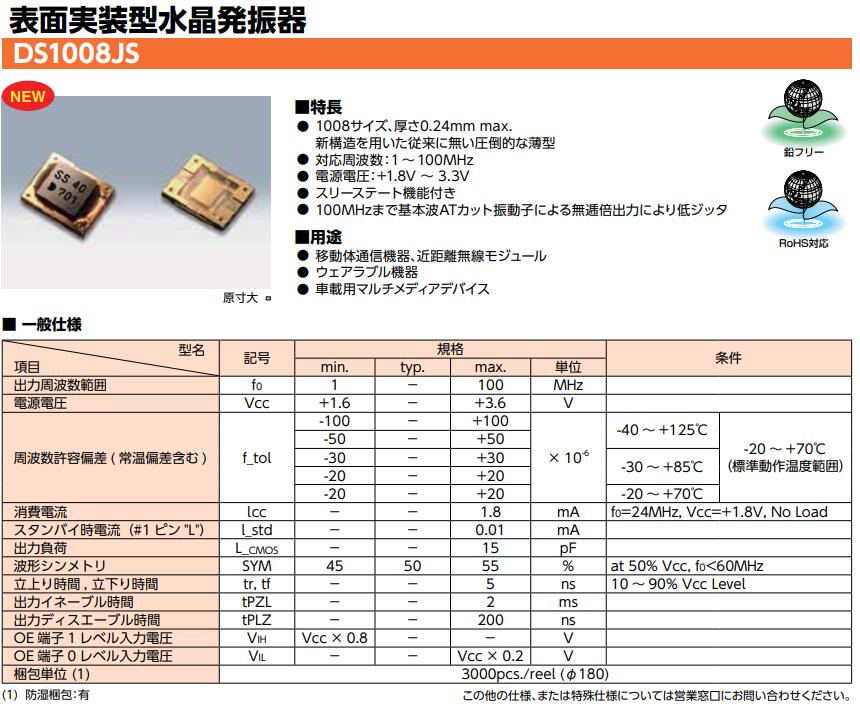 通過新設(shè)計(jì)石英芯片,安裝石英芯片和新工藝以及優(yōu)化封裝設(shè)計(jì),我們已經(jīng)實(shí)現(xiàn)了全球最小,最薄的性能,其性能等于或優(yōu)于傳統(tǒng)產(chǎn)品。我們將繼續(xù)生產(chǎn)各種小型和薄型產(chǎn)品以及高功能,高頻率,高可靠性,低功耗型等各種功能,并將有助于各種設(shè)備的小型化/高功能性。