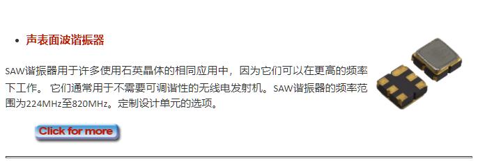 特征:低插入損耗,石英穩(wěn)定性,通過無鉛認證,成本效率,可選:定制設計SAW諧振器