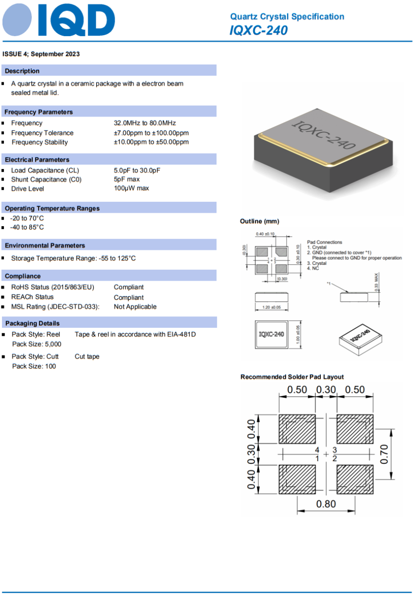 IQD推出的IQXC-240是世界上最小的石英晶體之一