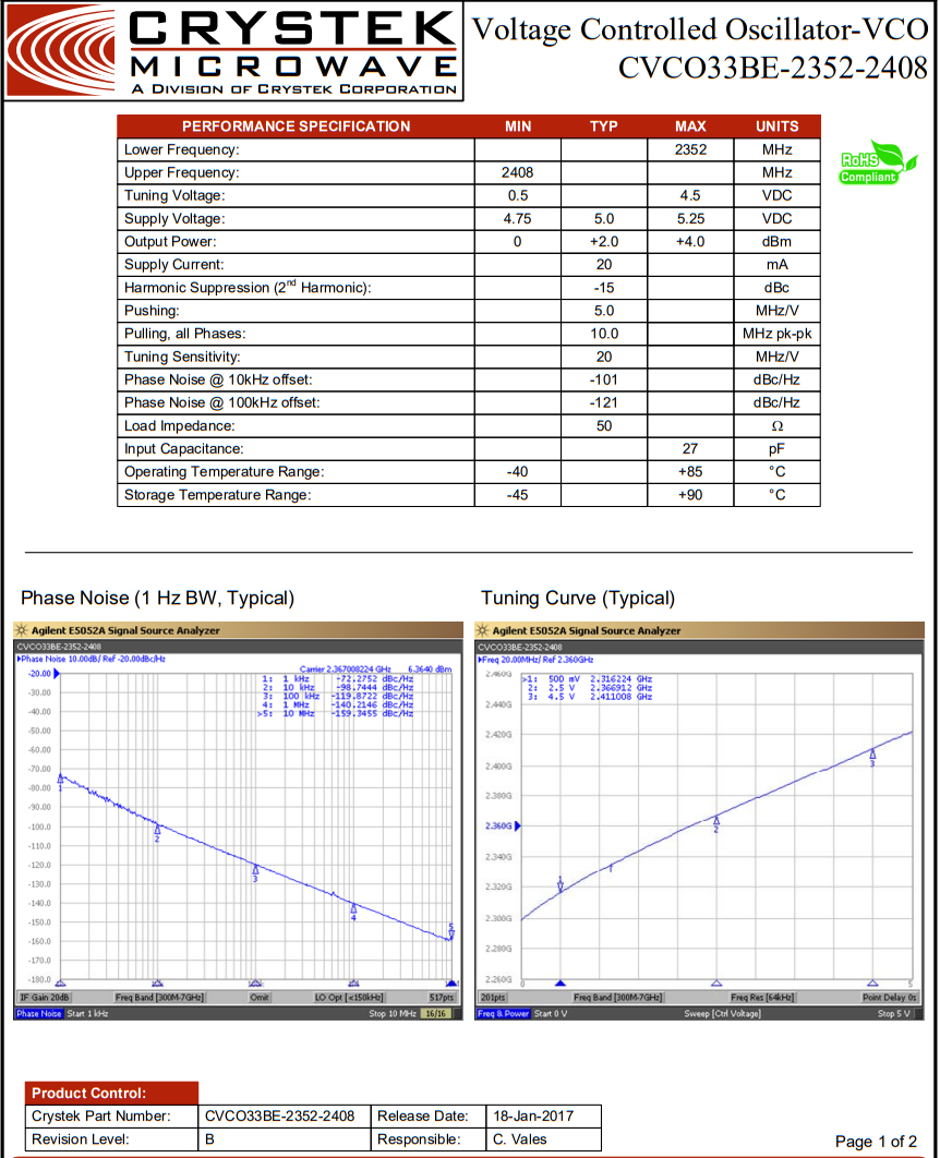Crystek最新的CVCO33BE-2352-2408振蕩器領先全球