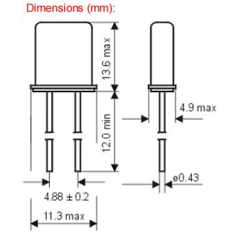 12.81288|7.3728MHz|30pF|格耶插件晶振尺寸圖